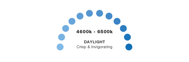 Rather than colours of the rainbow, colour temperatures simply refers to warm or cold light. Colour temperature is measured in units called kelvins and uses a scale that runs from warm to cold. The warmest temperature range is 2000k-3000k and this is used to create an ambient, welcoming atmosphere. Warm lighting is generally dimmer, and used in spaces intended for relaxation and rest. In an office this might be a break room, cafeteria or a reception area. Cooler lighting ranges from 3100K to 6500K and is much brighter and crisp, at the other end of the scale. Cooler lighting is better suited to areas where task lighting is needed, such as offices, garages or display areas. Often it is needed where focused tasks such as writing, working on a computer or drawing are to take place.