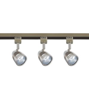 Track lighting allows spotlight heads to be moved freely along a length of track. This is ideal above the edges of a kitchen island or counter top. It’s especially useful with metallic surfaces, as the ability to change lighting angles helps control glare. Robus Acorn track lighting suits this role.